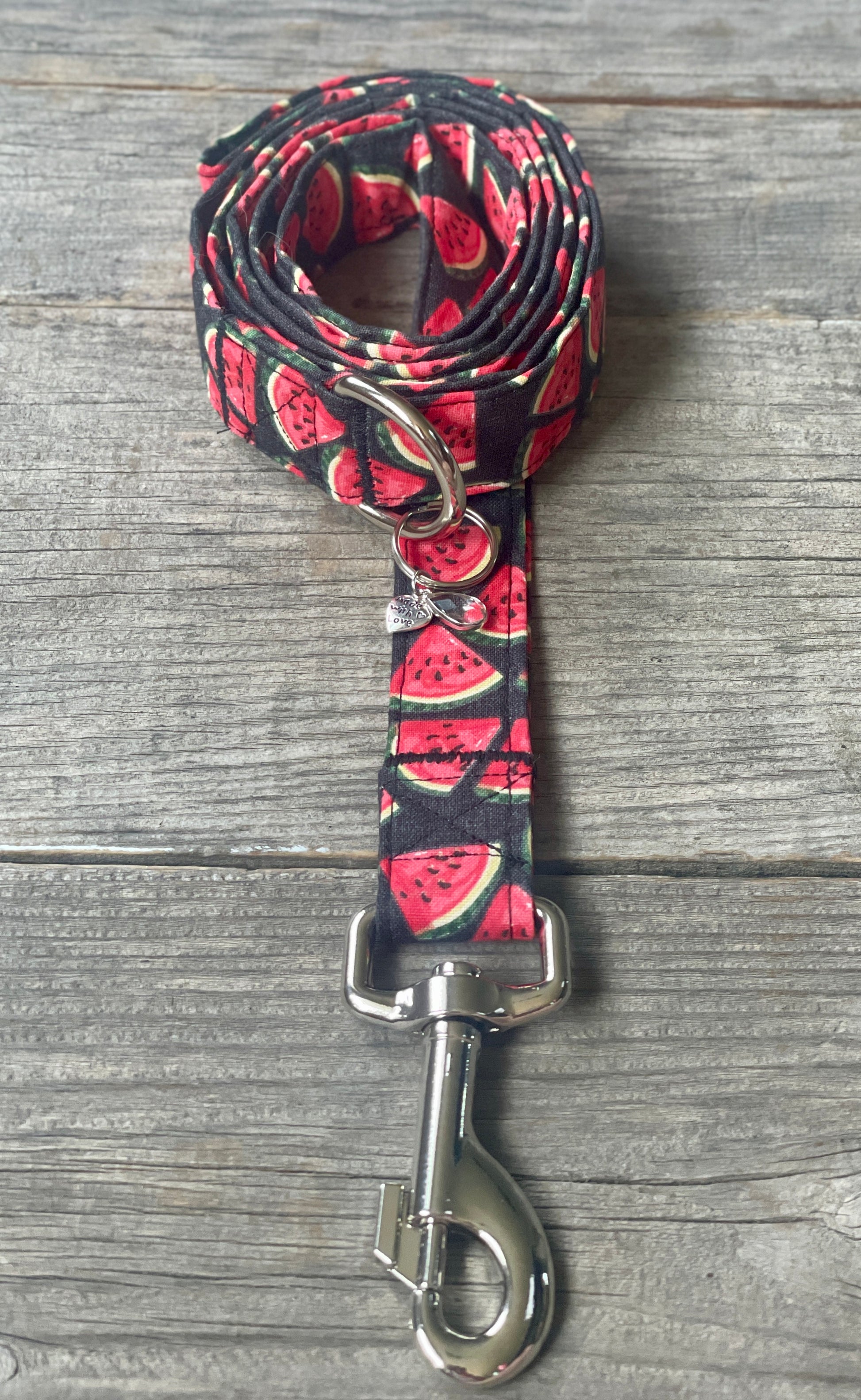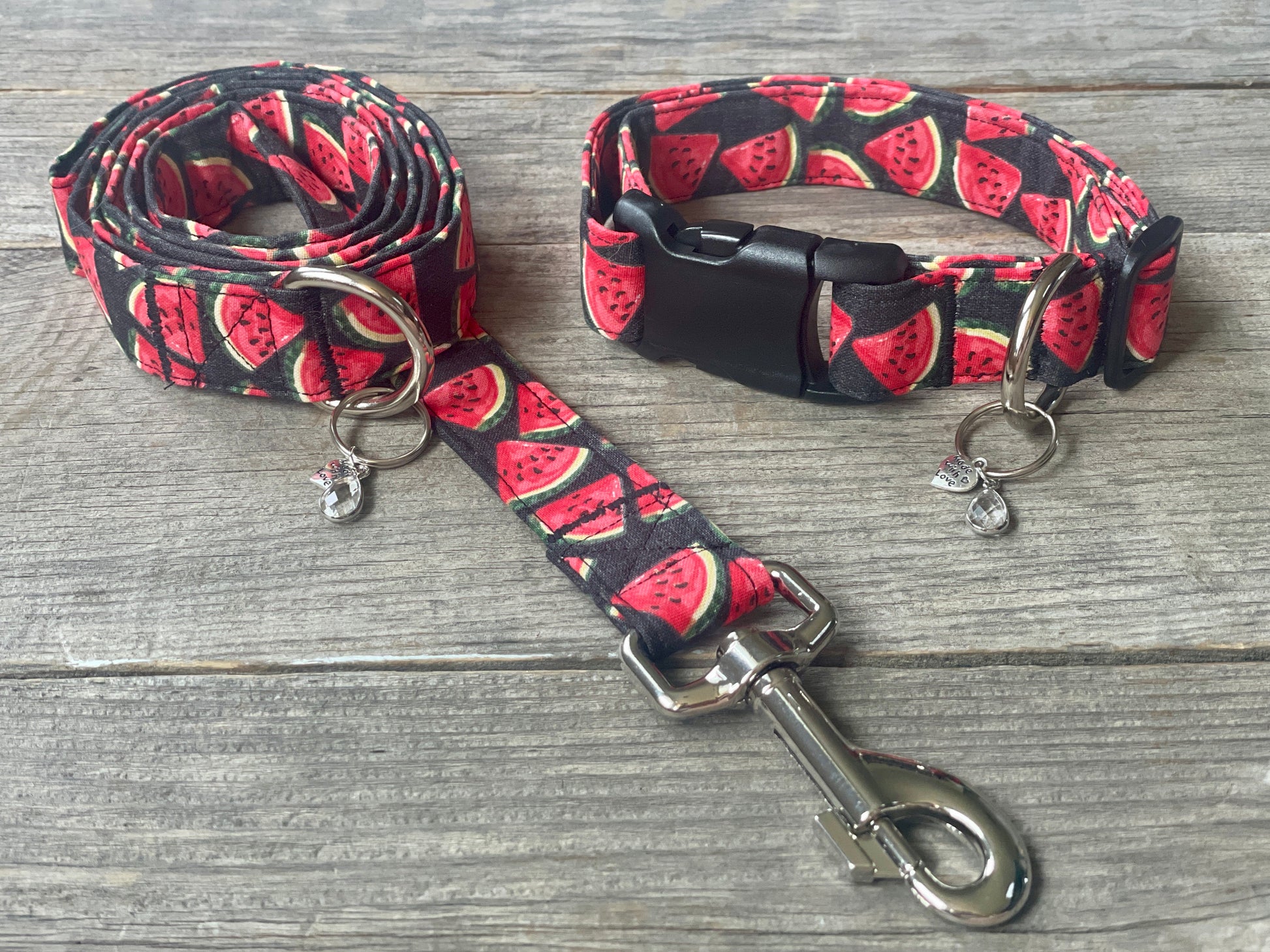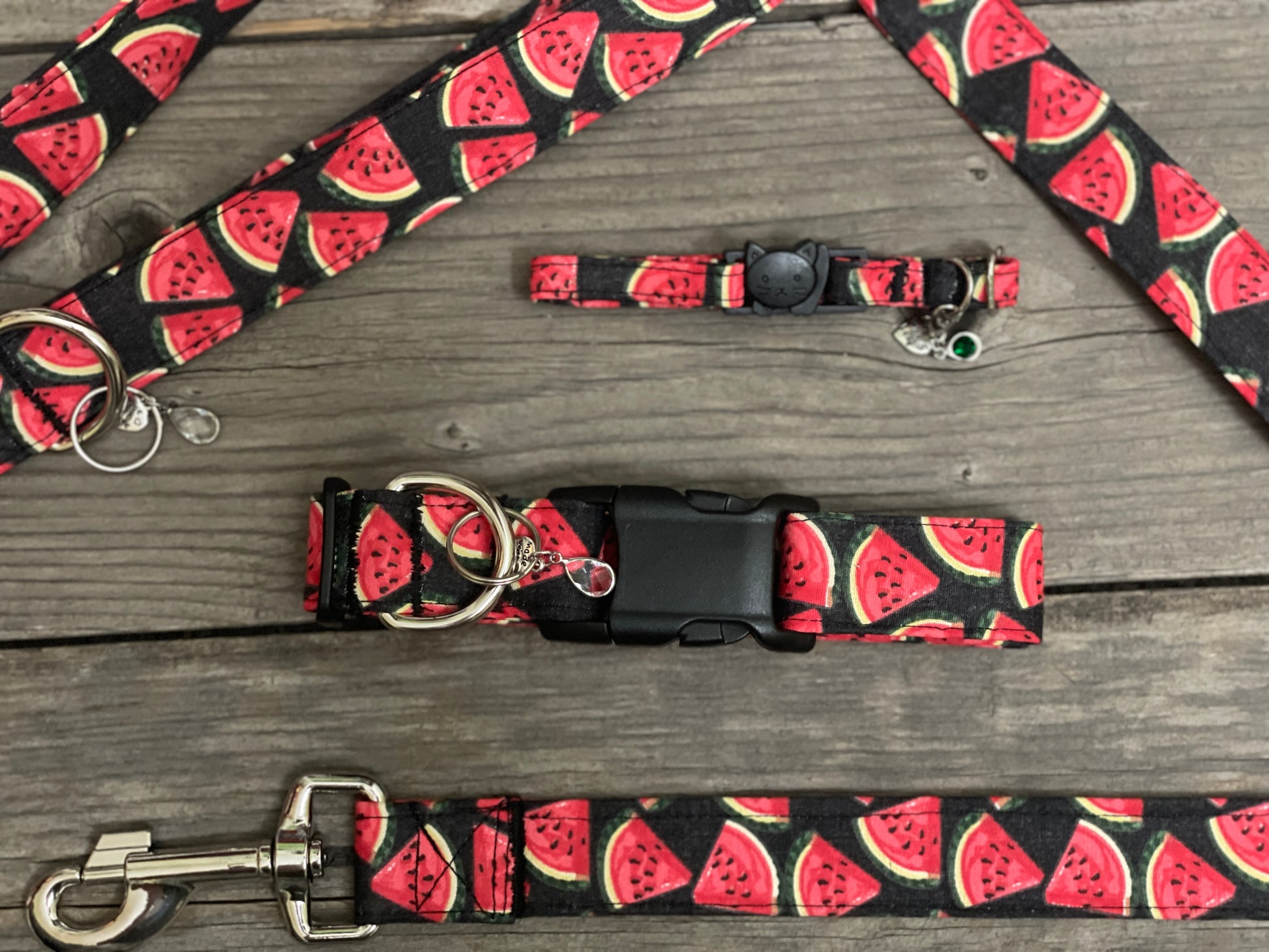 This delicious collar will have you drooling for more. The charcoal background makes the deep coral and green melons pop! You’ll look like a melon bucks at any picnic with this collar.