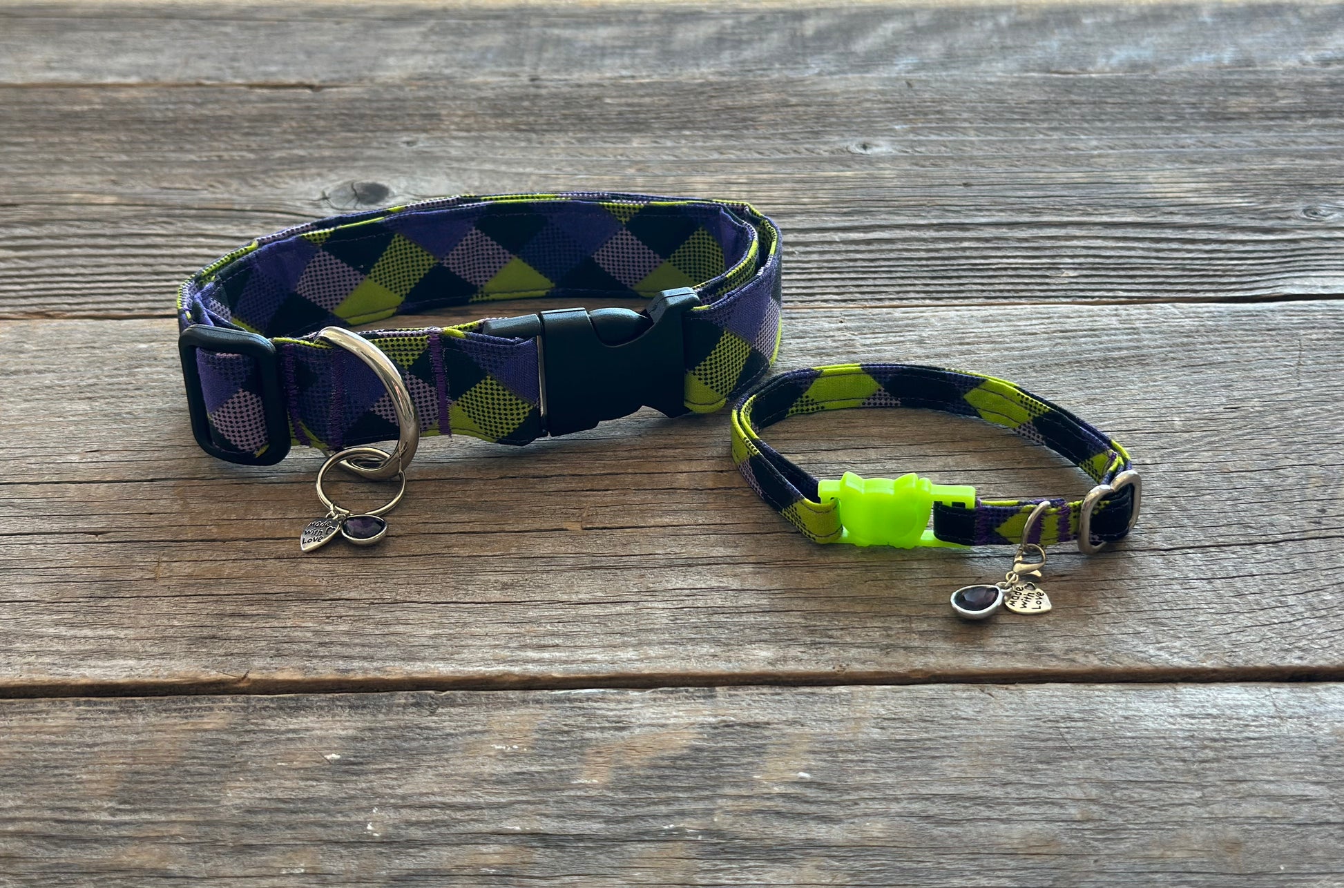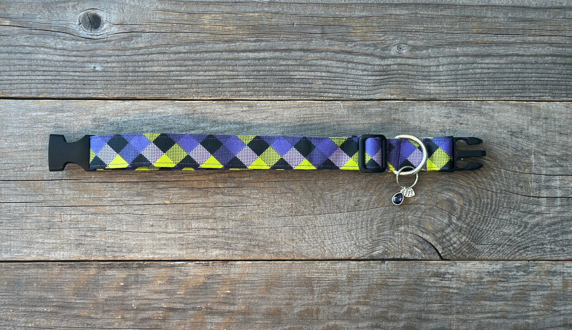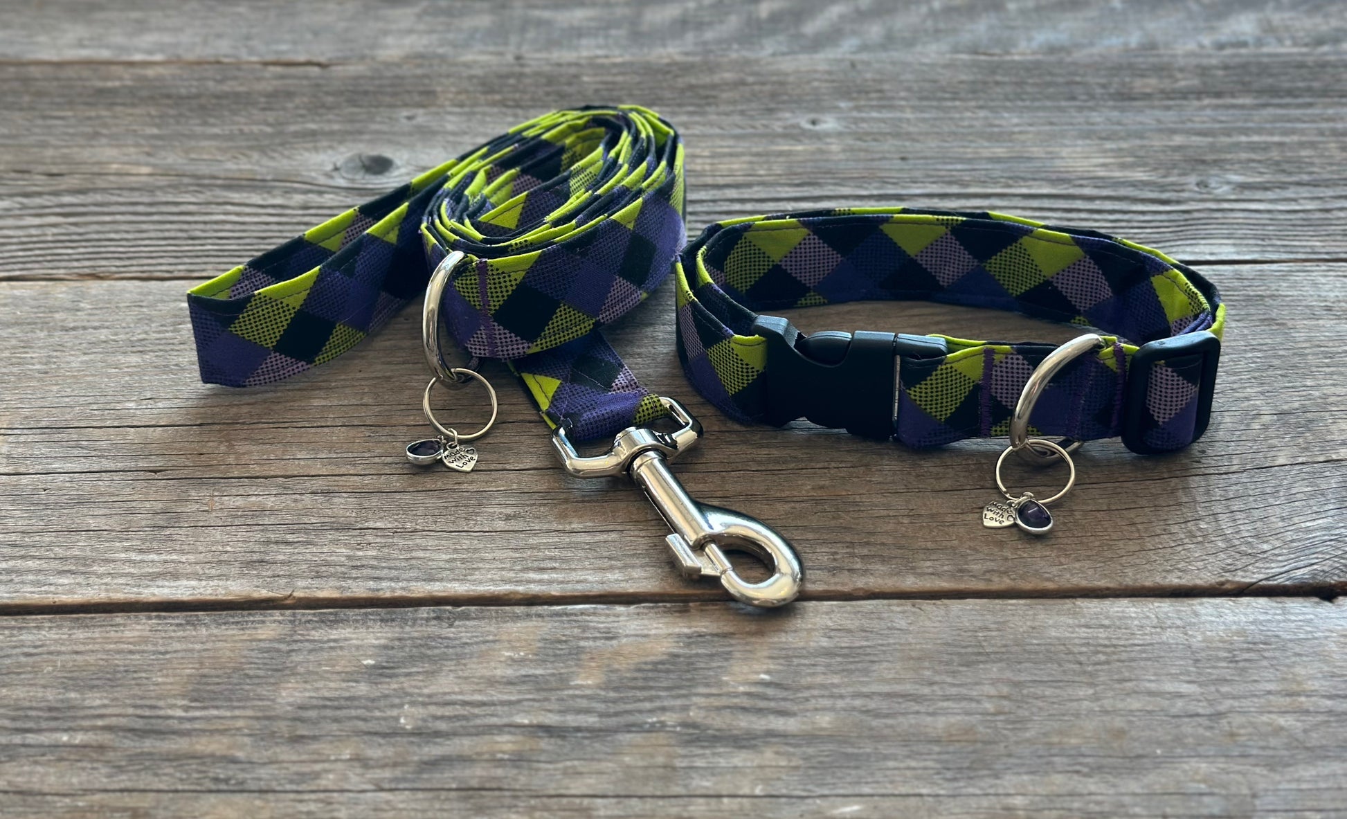 This collar has a matching leash option, don't forget to check it out! Our leashes are 5-foot long, 1-inch wide, and come with a heavy-duty silvertone metal spring-loaded hook that attaches to the D-ring on your pet's collar**. Each collar comes with a coordinating charm*. This hand-crafted collar is made with 100% cotton fabric and your choice of a metal or plastic buckle with a matching adjuster. Each collar is made with a reinforced metal D-ring. This elegant collar is sure to last for years.