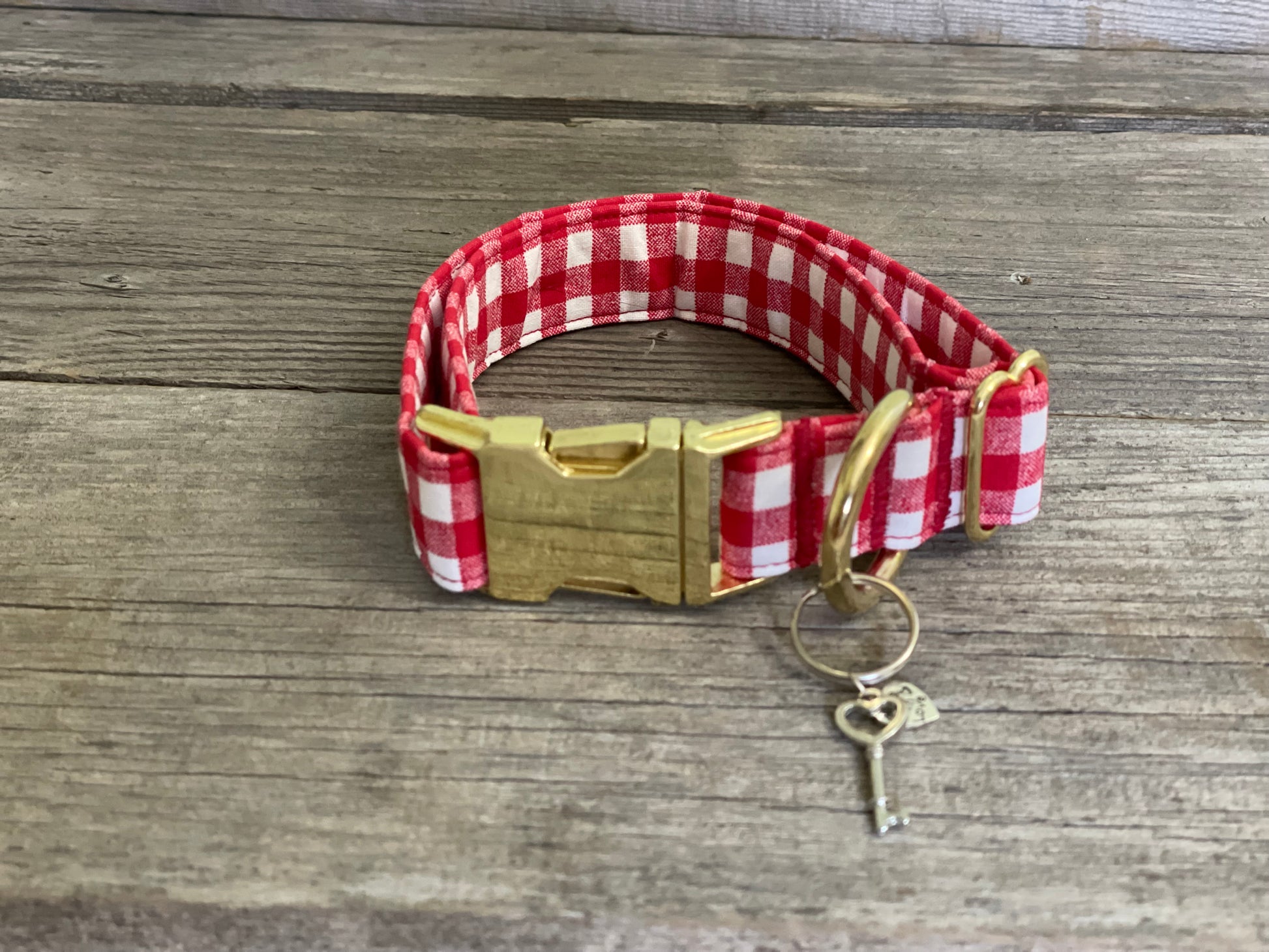This cute collar features red and white checkers and is perfect for all your romantic picnic dates. This collar is perfect to get any puppy love from a date to just walking in the park.