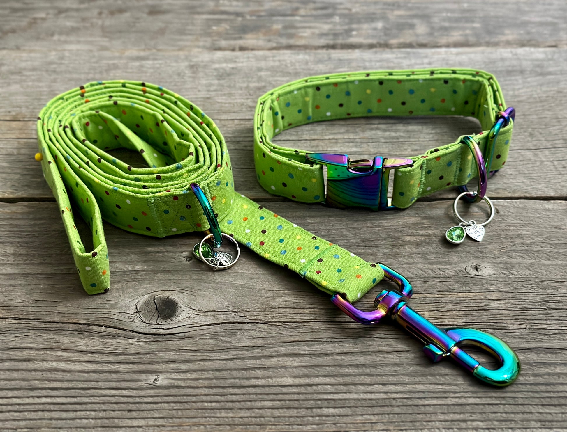 We offer a matching collar to this leash, so don't forget to check it out! All our collars are 1-inch wide and adjustable. We offer small, medium, and large, but are happy to make custom sizes, just send us an email at terrificollars@gmail.com.