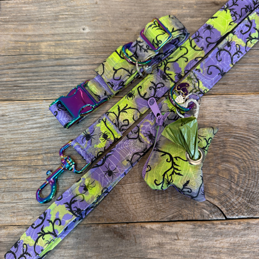 Add a touch of magical mischief to your walks with the Wicked Vines Poop Bag Dispenser! Twisting green vines entwined with mystical purple webs create a hauntingly enchanting look that’s bold, mysterious, and just a little wicked. Perfect for your furry familiar, this dispenser is easy to clip to your leash or bag, keeping walks practical while turning heads with spellbinding Halloween flair.