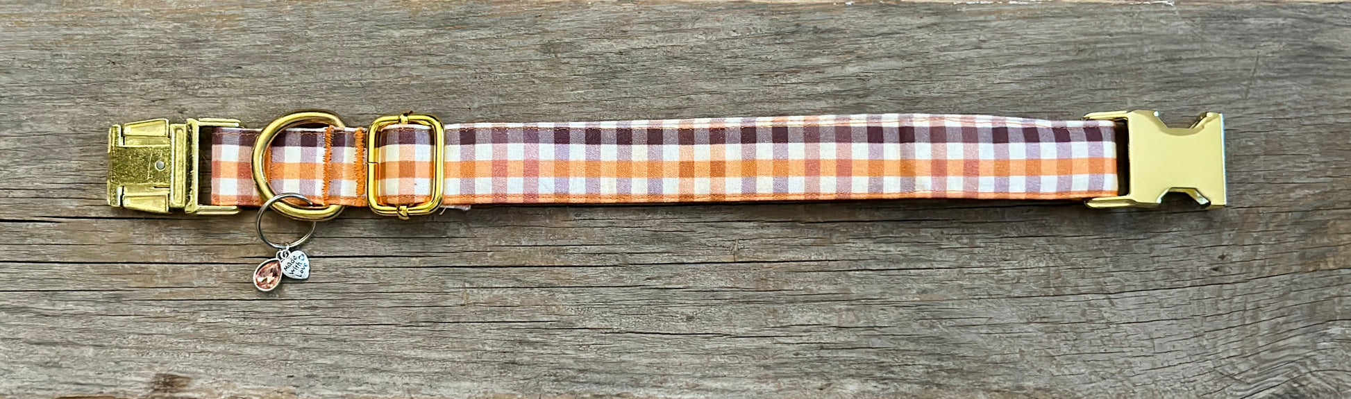 This collar has a matching leash option, don't forget to check it out! Our leashes are 5-foot long, 1-inch wide, and come with a heavy-duty silvertone metal spring-loaded hook that attaches to the D-ring on your pet's collar**. Each collar comes with a coordinating charm*. This hand-crafted collar is made with 100% cotton fabric and your choice of a metal or plastic buckle with a matching adjuster. Each collar is made with a reinforced metal D-ring. This elegant collar is sure to last for years.