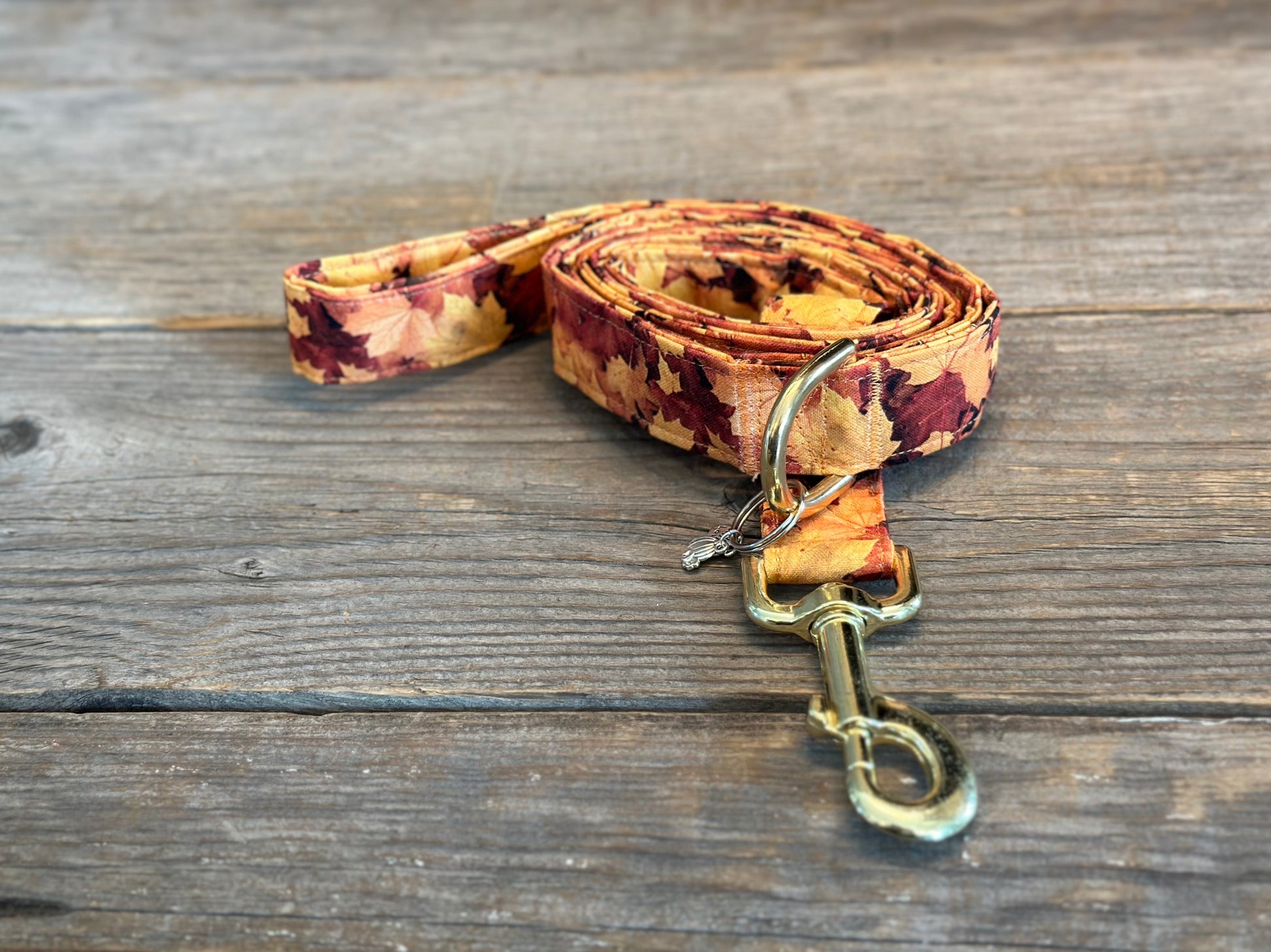 Our dog leashes are 1" wide and 5' long. Upon special request, we can make leashes longer or shorter. We can also make them 5/8" wide.