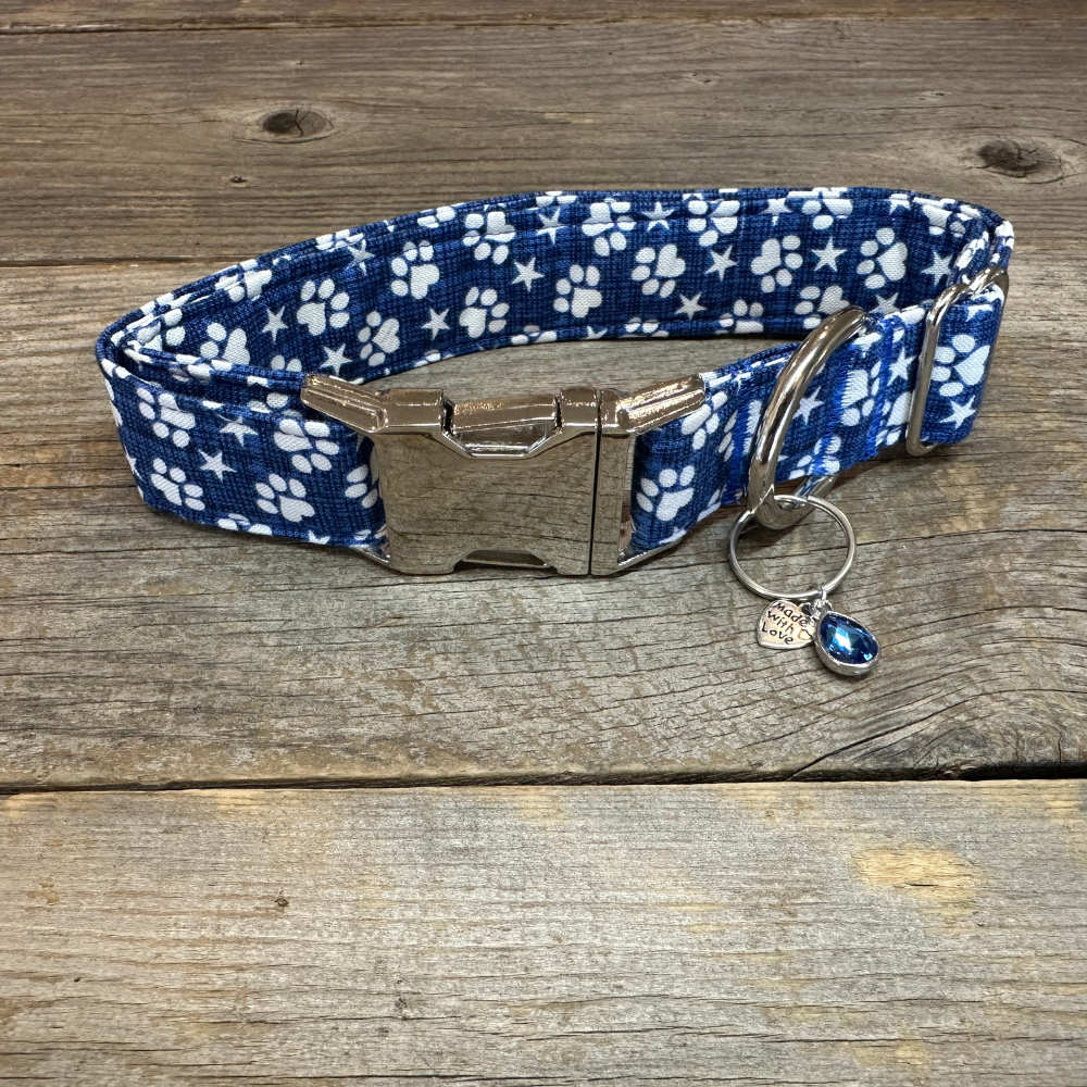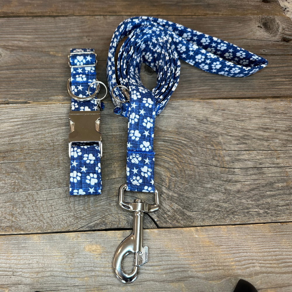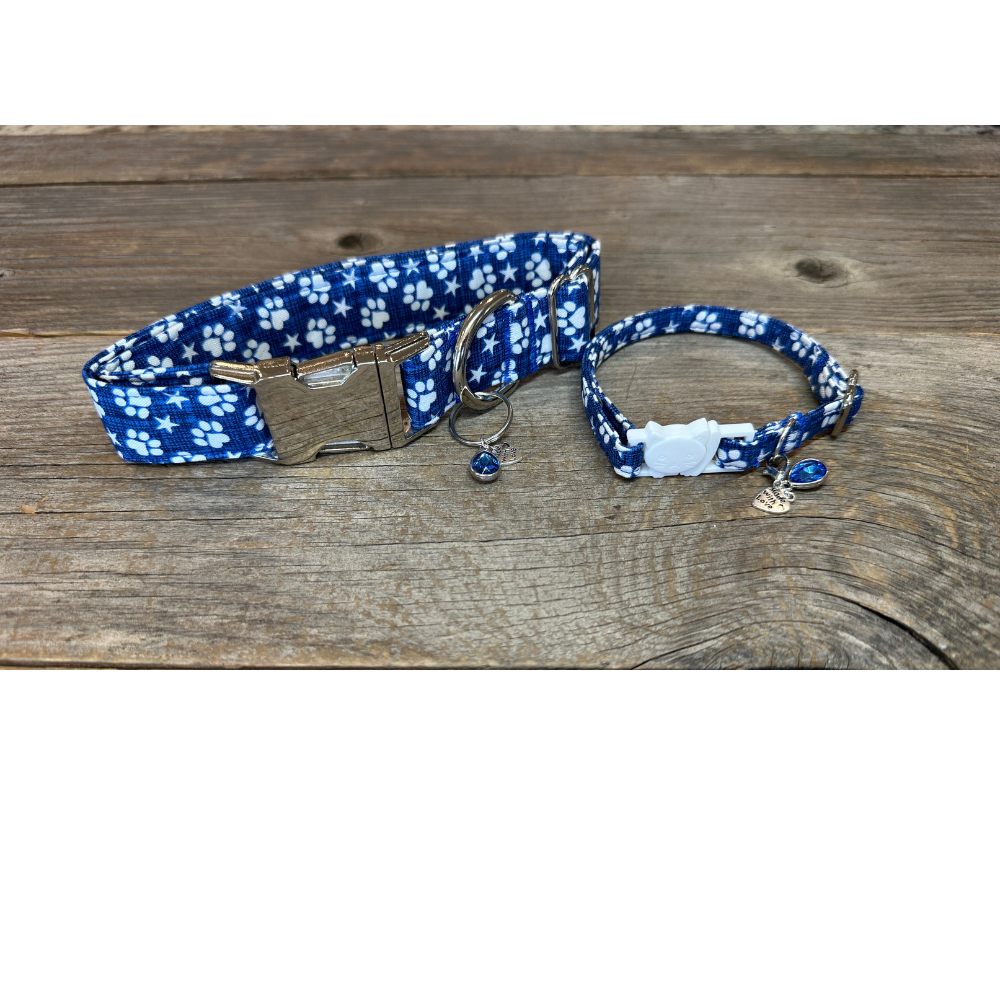This collar has a matching leash option, don't forget to check it out! Our leashes are 5-foot long, 1-inch wide, and come with a heavy-duty silvertone metal spring-loaded hook that attaches to the D-ring on your pet's collar**. Each collar comes with a coordinating charm*. This hand-crafted collar is made with 100% cotton fabric and your choice of a metal or plastic buckle with a matching adjuster. Each collar is made with a reinforced metal D-ring. This elegant collar is sure to last for years.