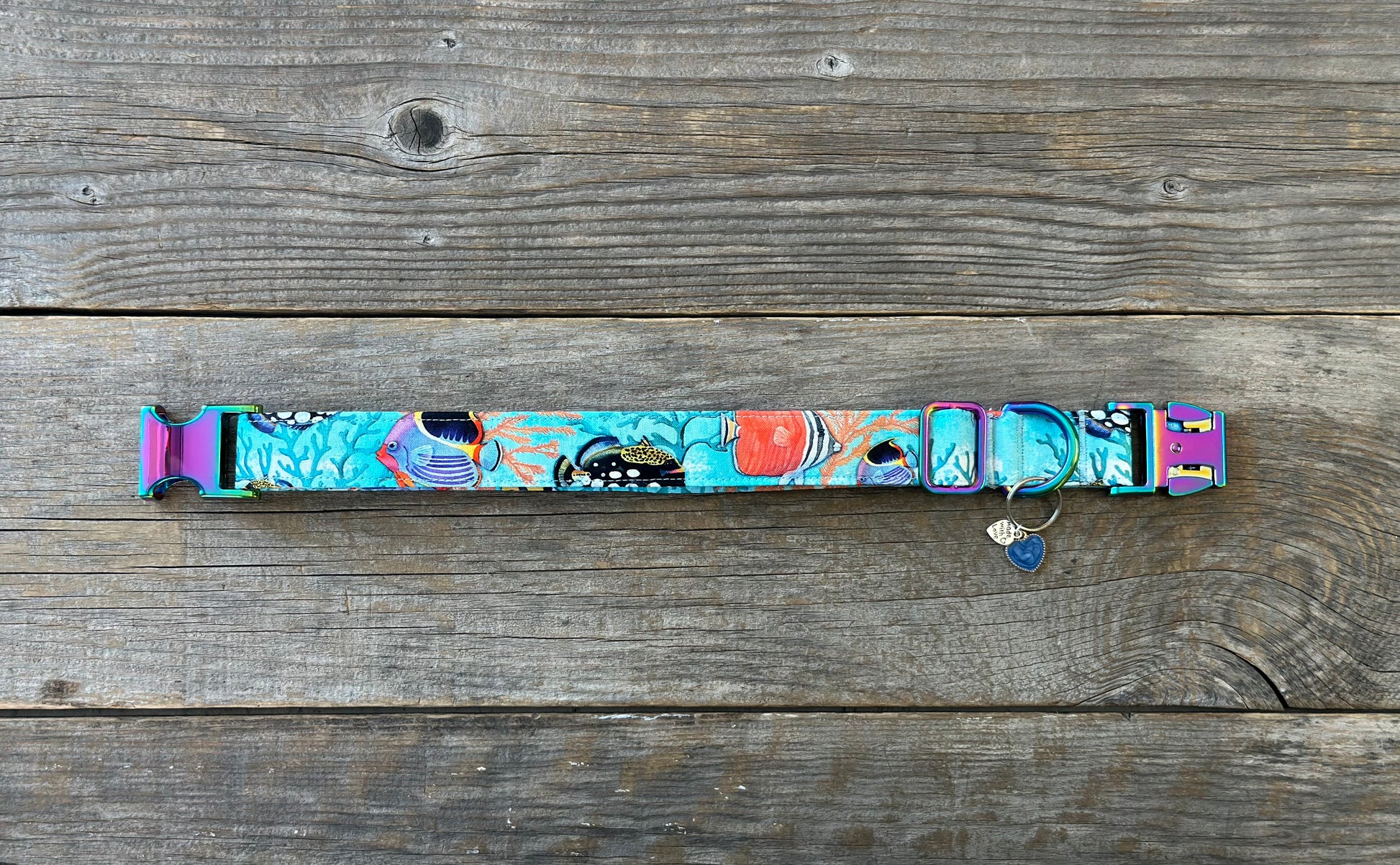 This collar has a matching leash option, don't forget to check it out! Our leashes are 5-foot long, 1-inch wide, and come with a heavy-duty silvertone metal spring-loaded hook that attaches to the D-ring on your pet's collar**. Each collar comes with a coordinating charm*. This hand-crafted collar is made with 100% cotton fabric and your choice of a metal or plastic buckle with a matching adjuster. Each collar is made with a reinforced metal D-ring. This elegant collar is sure to last for years.