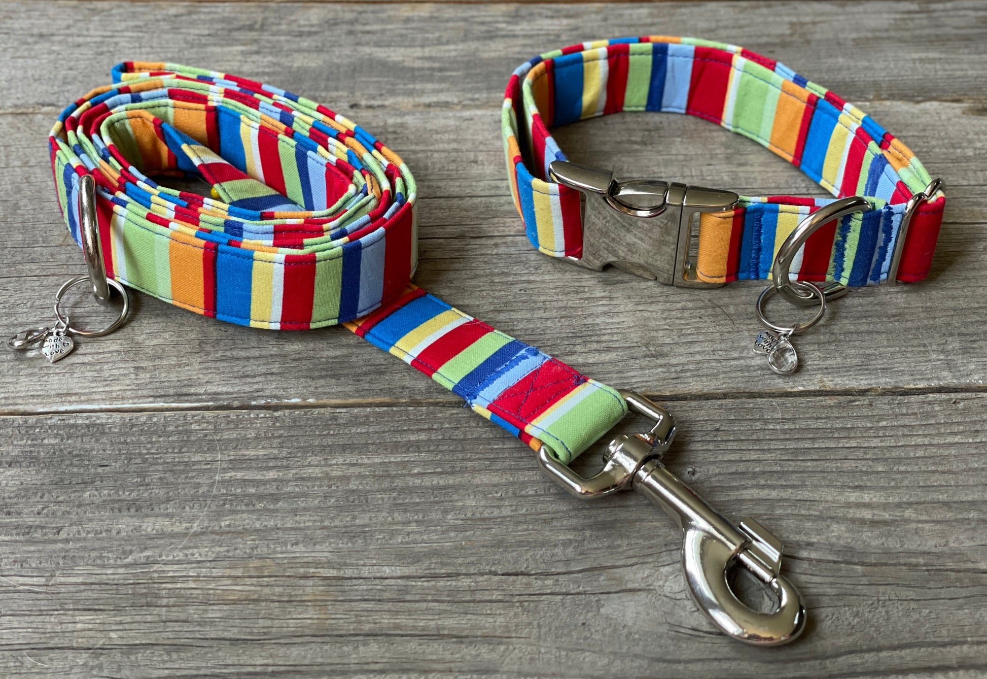 We offer a matching collar to this leash, so don't forget to check it out! All our collars are 1-inch wide and adjustable. We offer small, medium, and large, but are happy to make custom sizes, just send us an email at terrificollars@gmail.com.