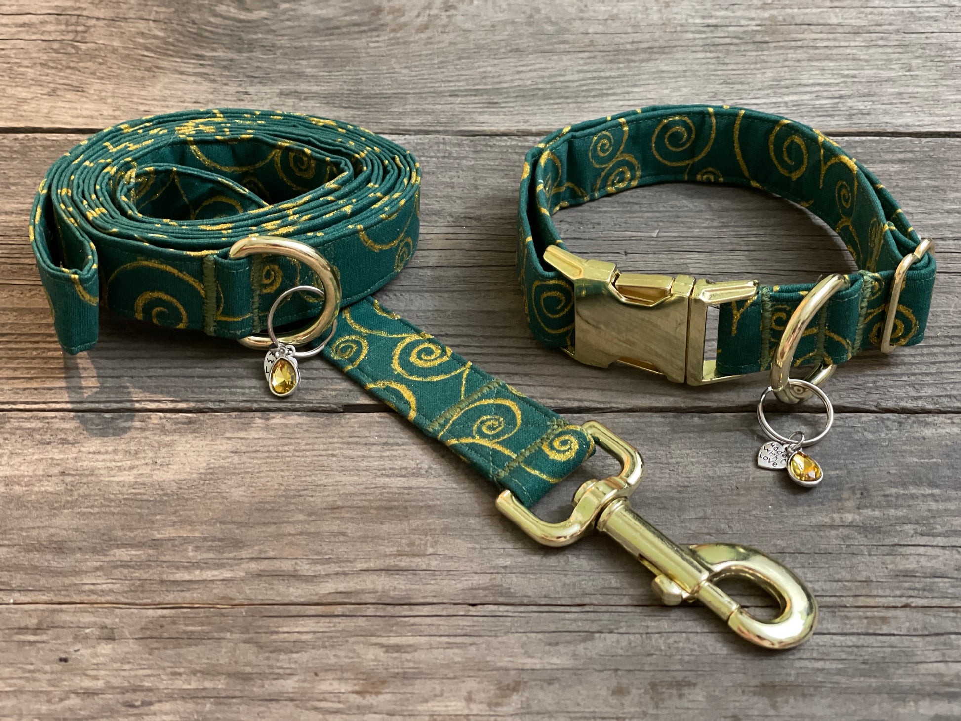 You’d have to be drunk to not buy this collar! This pattern’s golden-metallic swirls shimmer on its shamrock green background. This is the perfect collar for any high-spirited pup looking for some shenanigans.
