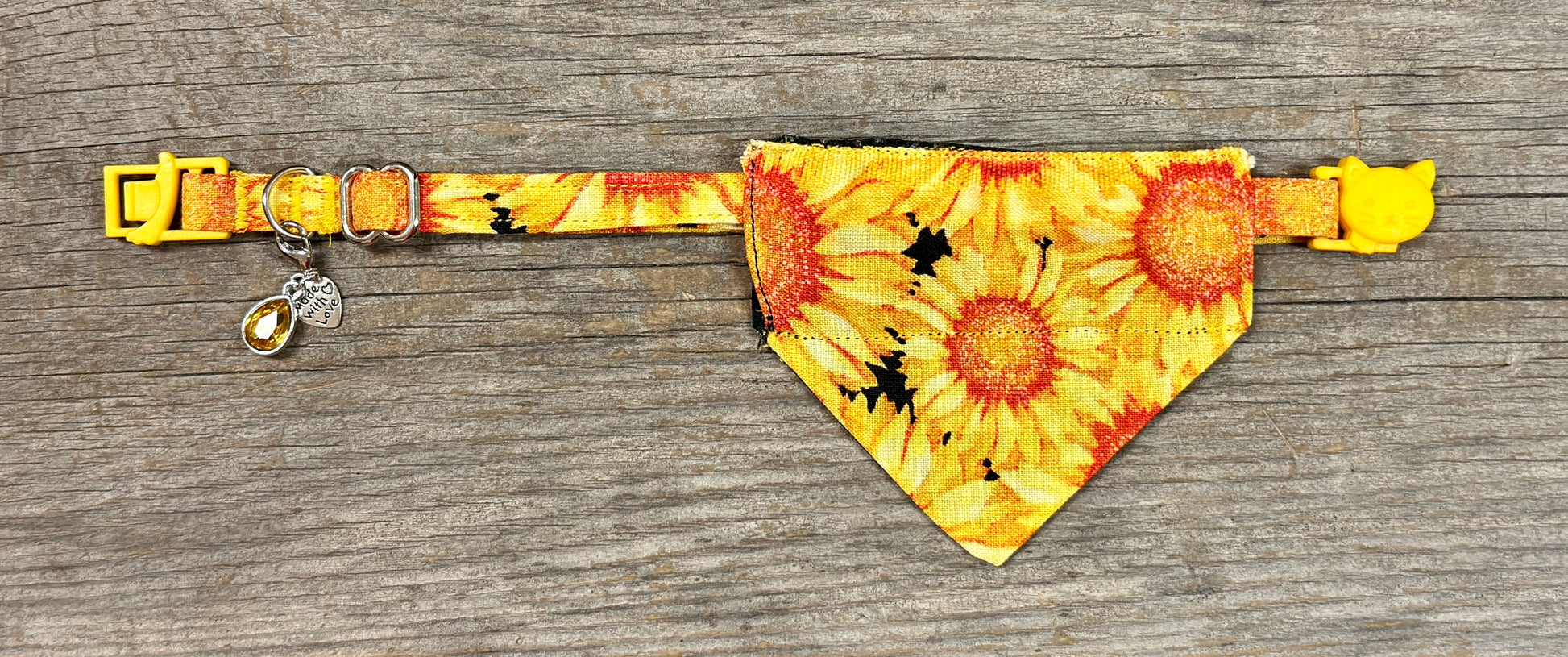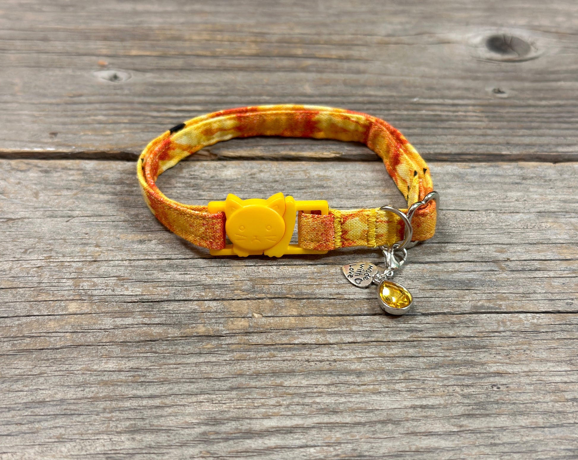This collar is made out of 100% cotton fabric, making it easy to hand-wash! To wash, simply place it in warm, soapy water and gently rub the fabric. Rinse the collar, then dry it by laying it flat or by hanging it on a wire. If your cat has a little extra fun while wearing this collar, try using a stain-remover pen or spray.