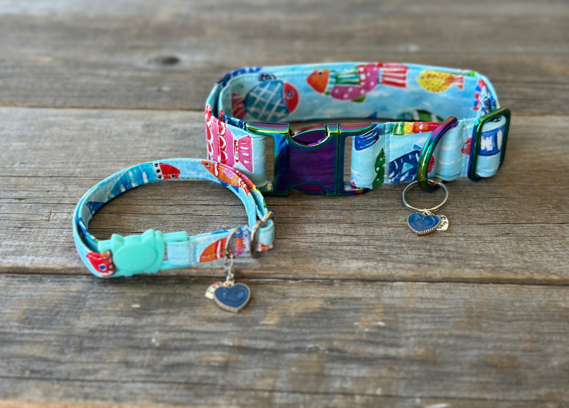 This collar has a matching leash option, don't forget to check it out! Our leashes are 5-foot long, 1-inch wide, and come with a heavy-duty silvertone metal spring-loaded hook that attaches to the D-ring on your pet's collar**. Each collar comes with a coordinating charm*. This hand-crafted collar is made with 100% cotton fabric and your choice of a metal or plastic buckle with a matching adjuster. Each collar is made with a reinforced metal D-ring. This elegant collar is sure to last for years.