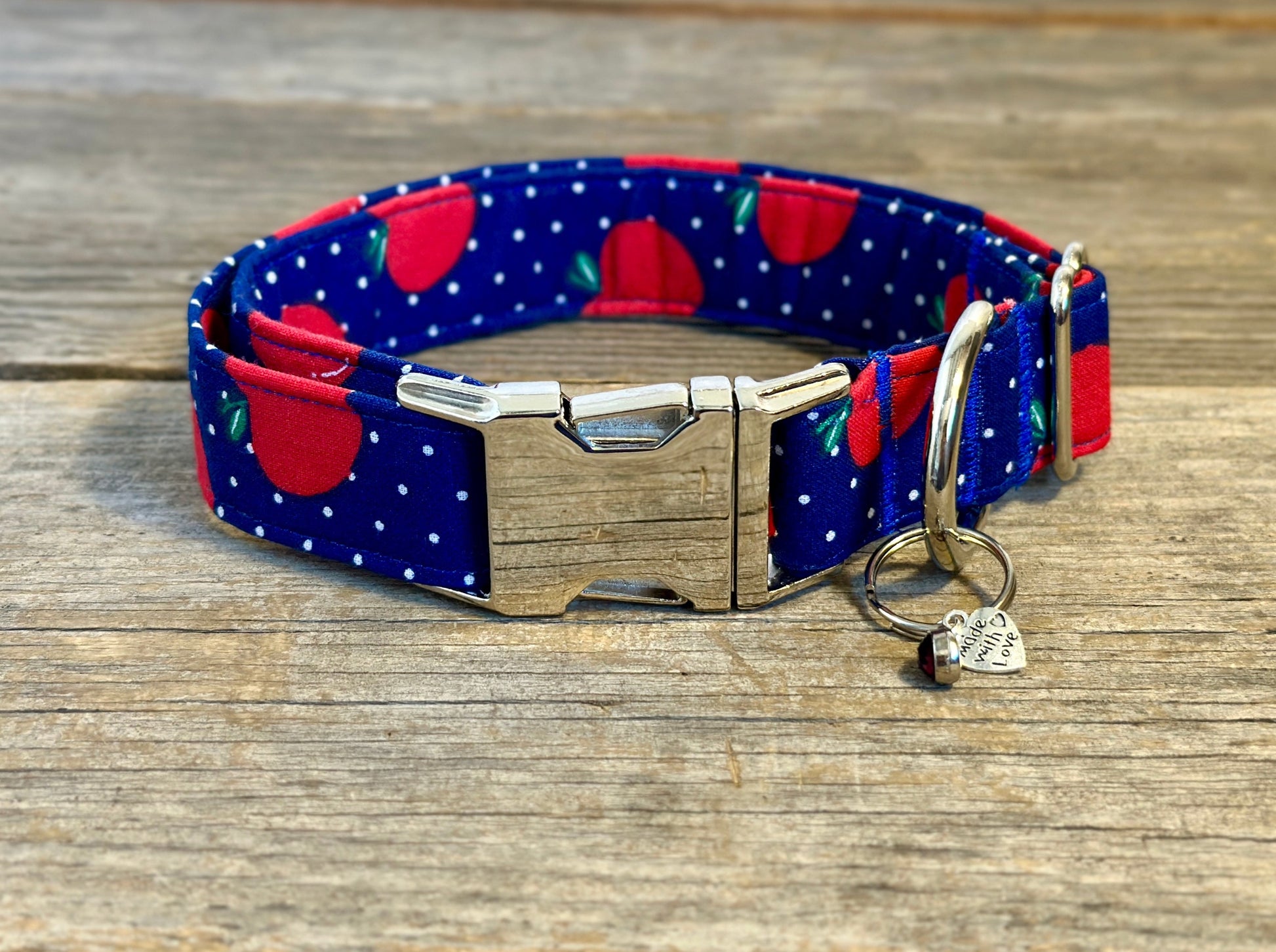 This collar has a matching leash option, don't forget to check it out! Our leashes are 5-foot long, 1-inch wide, and come with a heavy-duty silvertone metal spring-loaded hook that attaches to the D-ring on your pet's collar**. Each collar comes with a coordinating charm*. This hand-crafted collar is made with 100% cotton fabric and your choice of a metal or plastic buckle with a matching adjuster. Each collar is made with a reinforced metal D-ring. This elegant collar is sure to last for years.