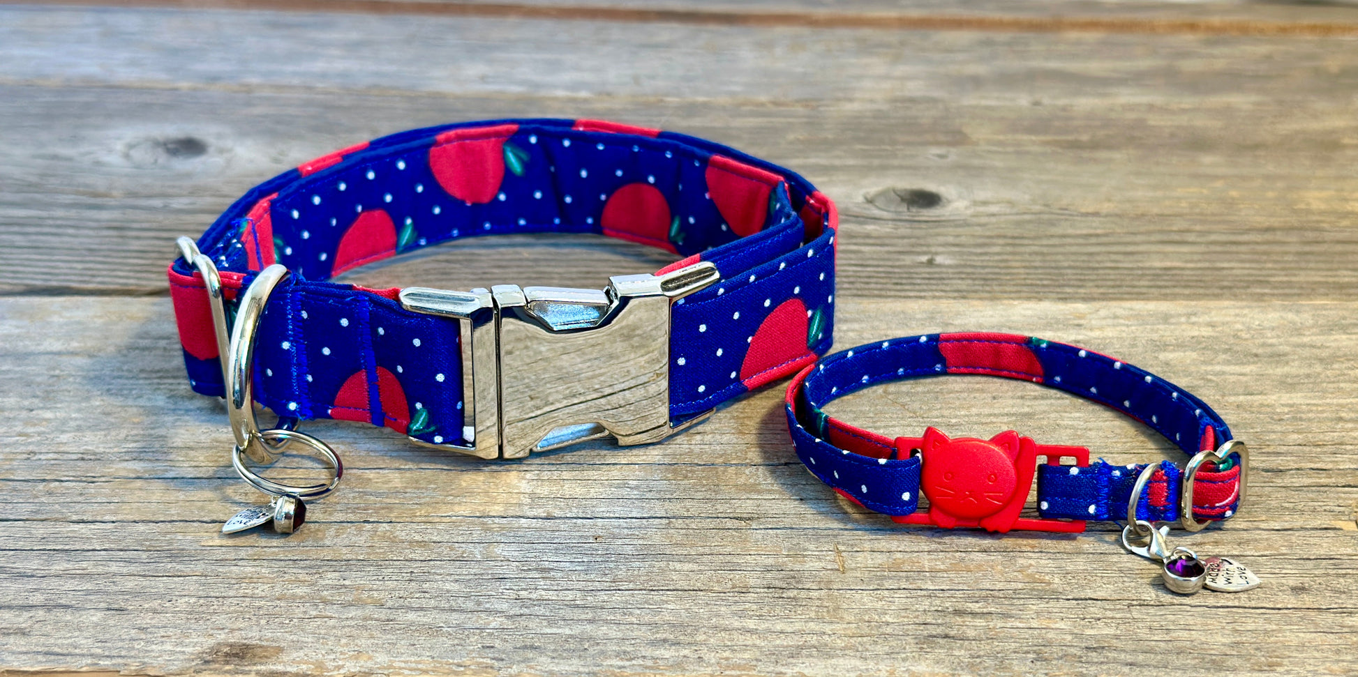 Washing and Care Instructions: This collar is made out of 100% cotton fabric, making it easy to handwash! To wash, simply place it in warm, soapy water and gently rub the fabric. Rinse the collar, then dry it by laying it flat or by hanging it on a wire. If your dog has a little extra fun while wearing this collar, try using a stain-remover pen or spray.