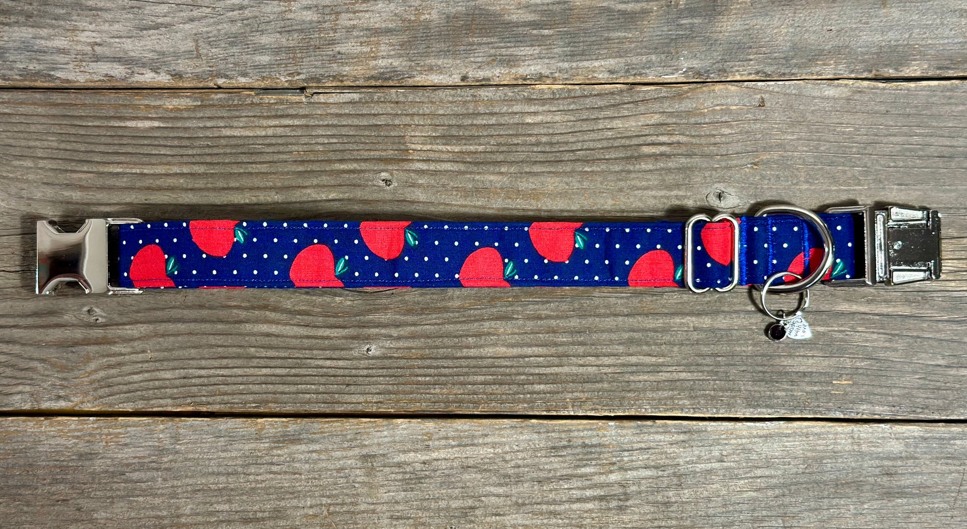 Our dog collars come standard as 1" wide. Upon special request, we can make them 3/8", 5/8", or 1.5" wide.