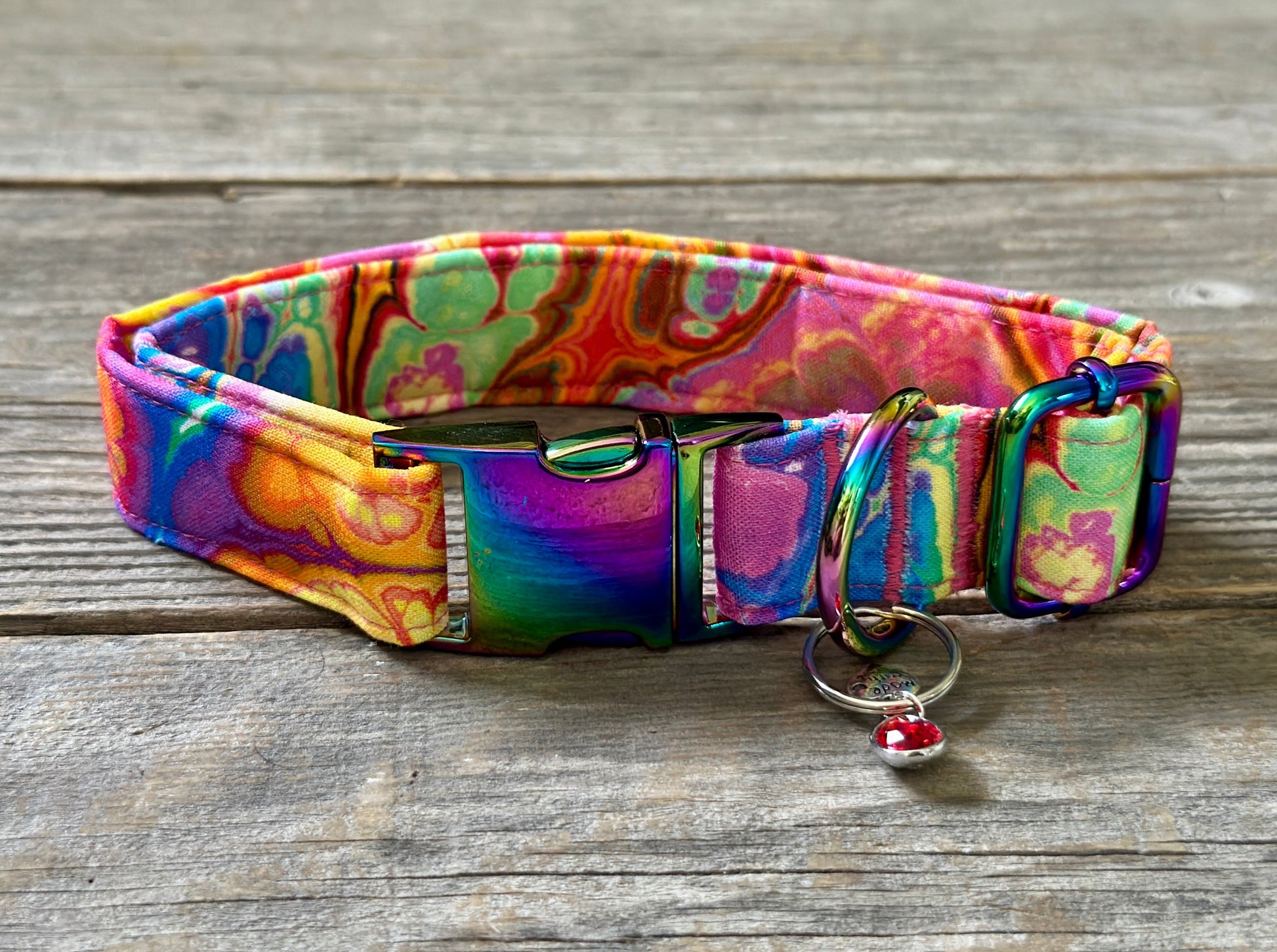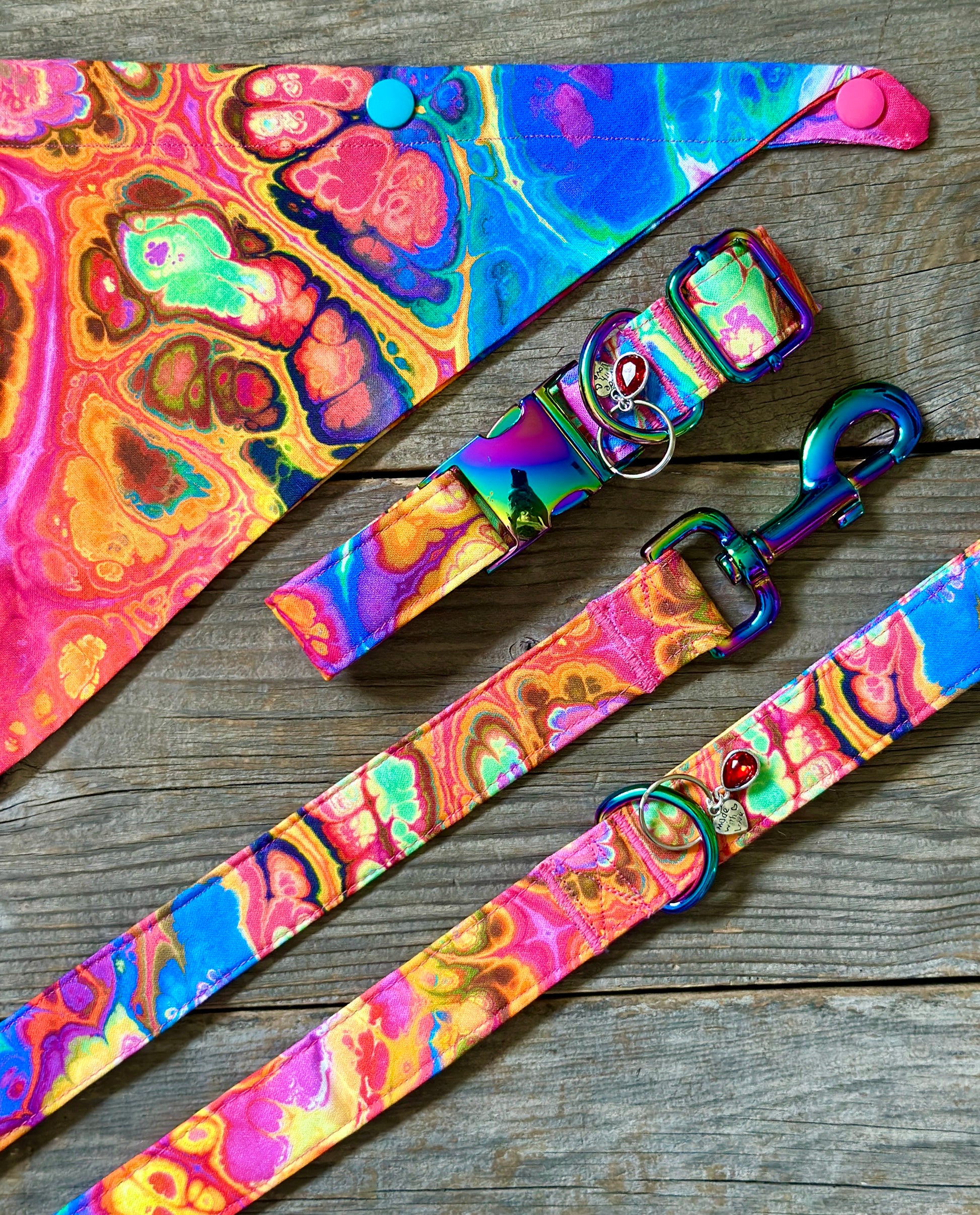 This collar has a matching leash option, don't forget to check it out! Our leashes are 5-foot long, 1-inch wide, and come with a heavy-duty silvertone metal spring-loaded hook that attaches to the D-ring on your pet's collar**. Each collar comes with a coordinating charm*. This hand-crafted collar is made with 100% cotton fabric and your choice of a metal or plastic buckle with a matching adjuster. Each collar is made with a reinforced metal D-ring. This elegant collar is sure to last for years.