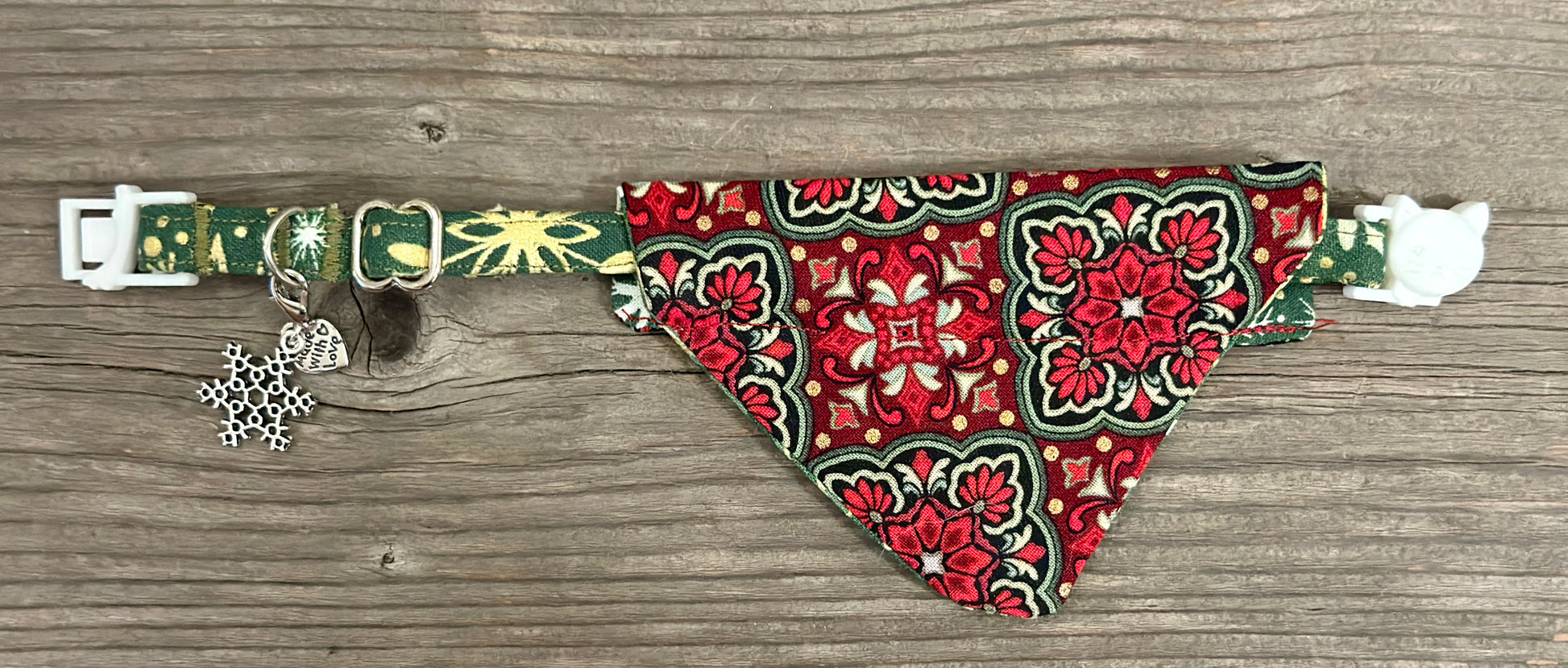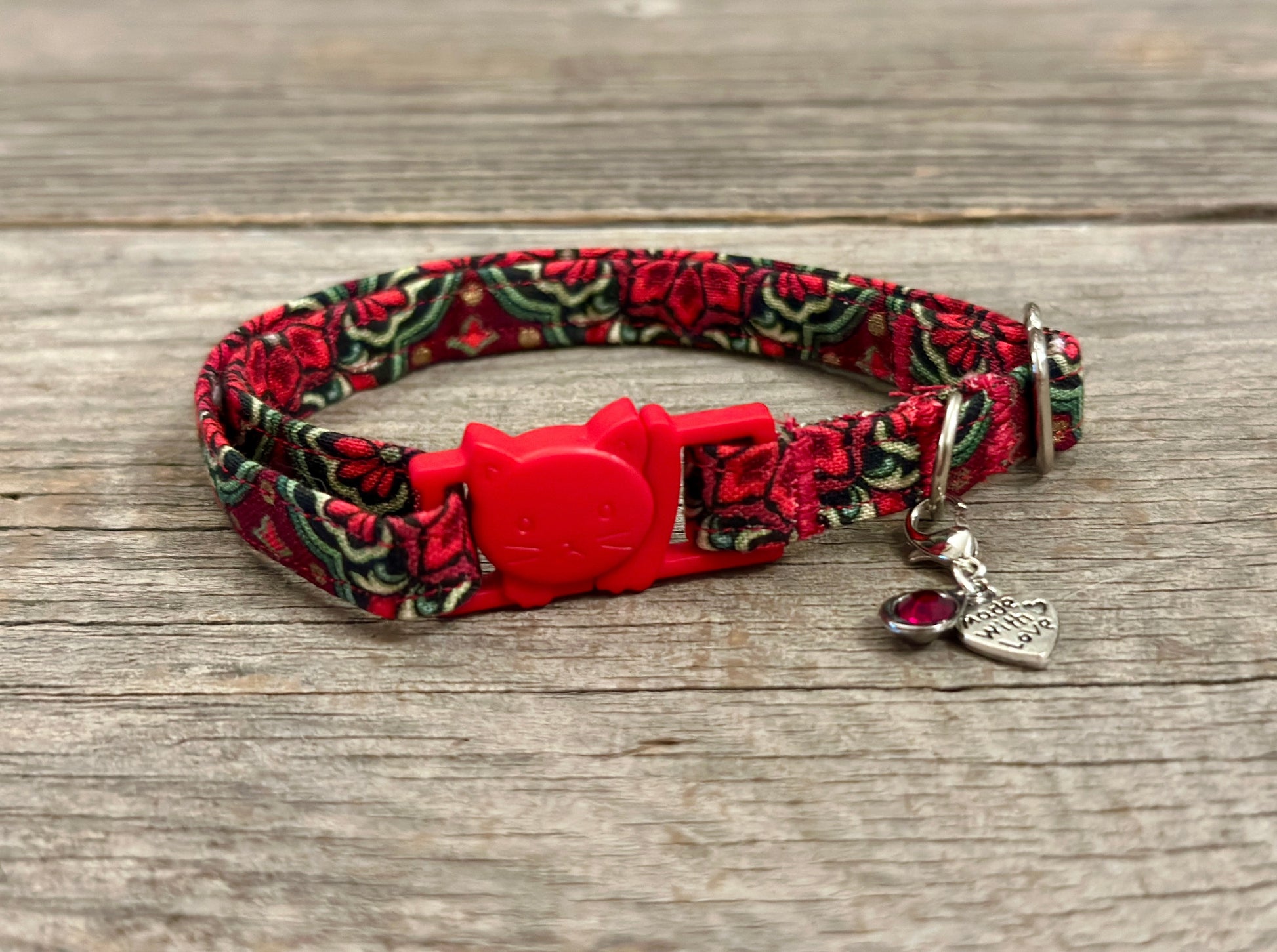 This collar is made out of 100% cotton fabric, making it easy to hand-wash! To wash, simply place it in warm, soapy water and gently rub the fabric. Rinse the collar, then dry it by laying it flat or by hanging it on a wire. If your cat has a little extra fun while wearing this collar, try using a stain-remover pen or spray.